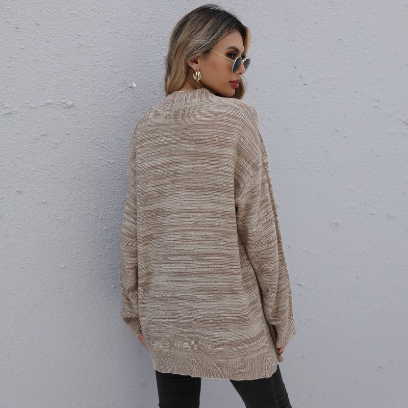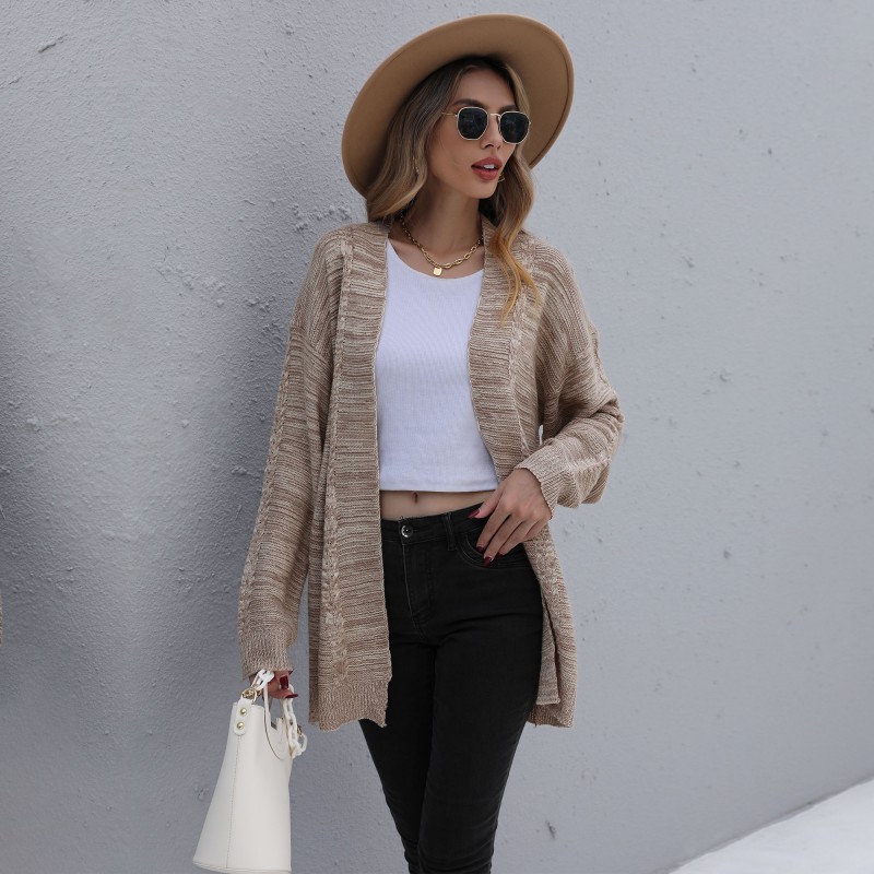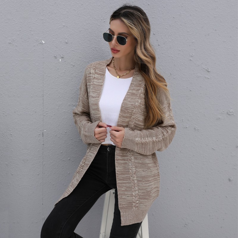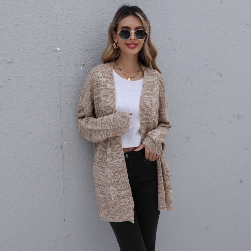 2021 autumn and winter new medium and long solid color twisted cardigan knitted sweater coat women