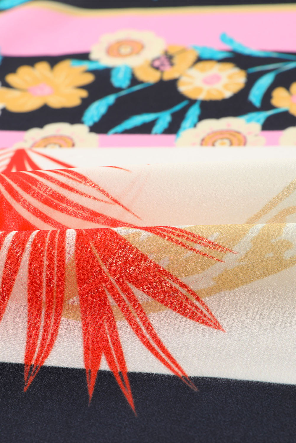 Bohemian Patchwork Print Drawstring Puff Sleeve Kimono