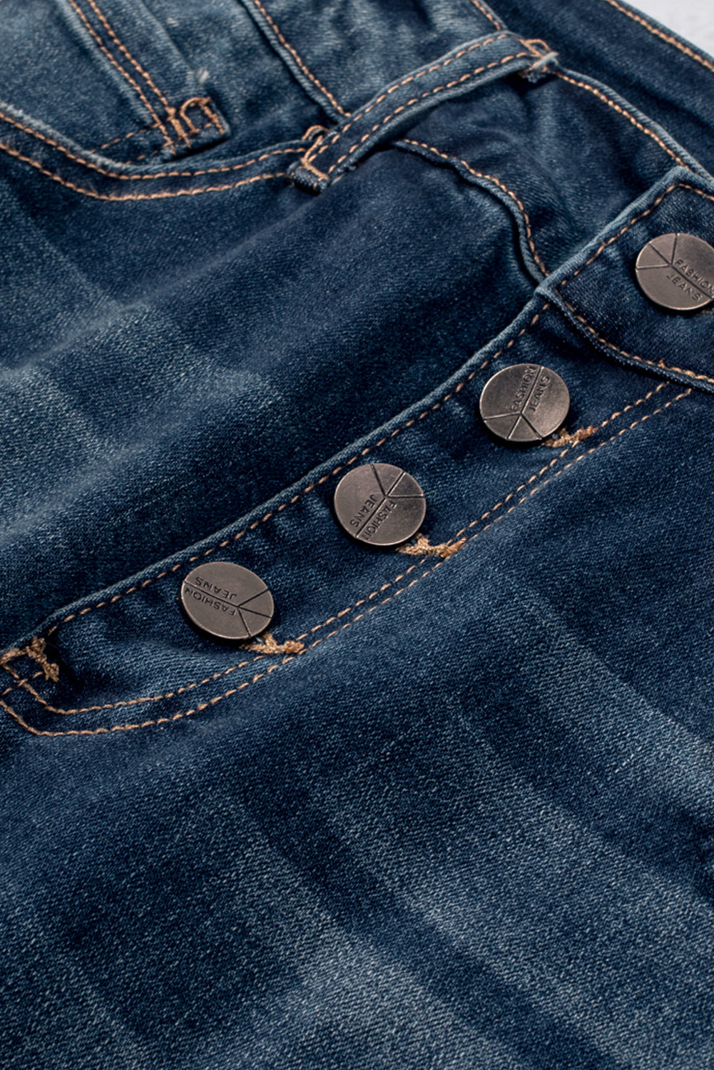 Button Fly High Waist Ripped Skinny Fit Ankle Jeans