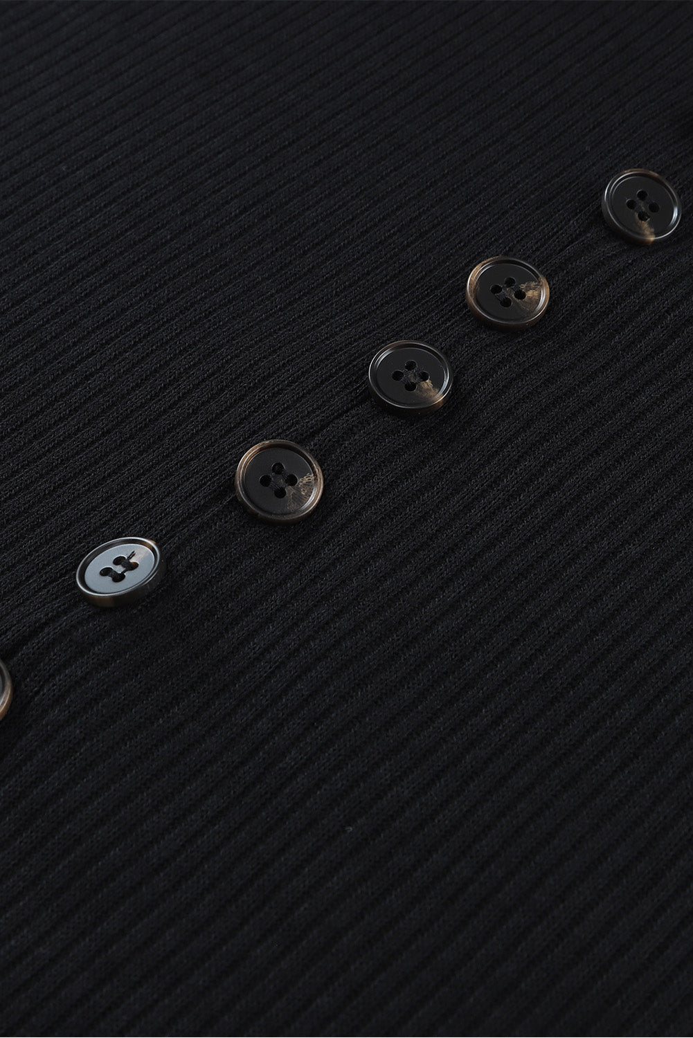 Brown Buttoned Ribbed Knit Sleeveless Midi Dress with Slit