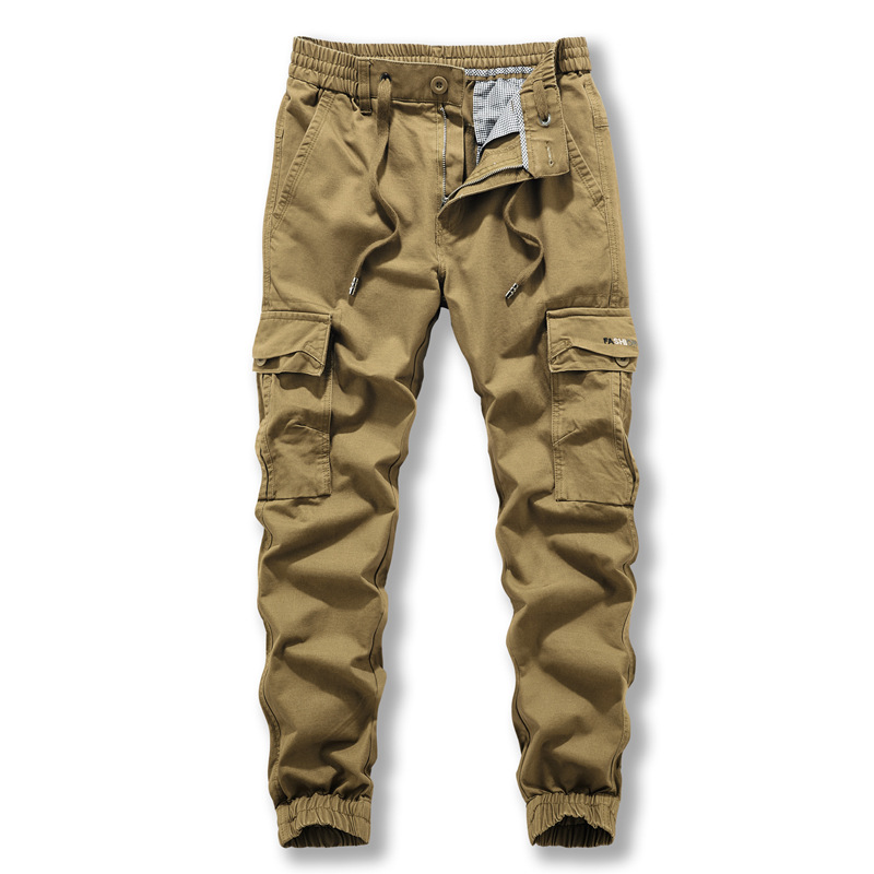 Casual pants: Men's new style overalls, trendy and versatile, washed pure cotton legged multi bag pants
