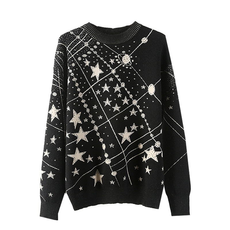 Catwalk Starry Sky Cartoon Jacquard Sweater