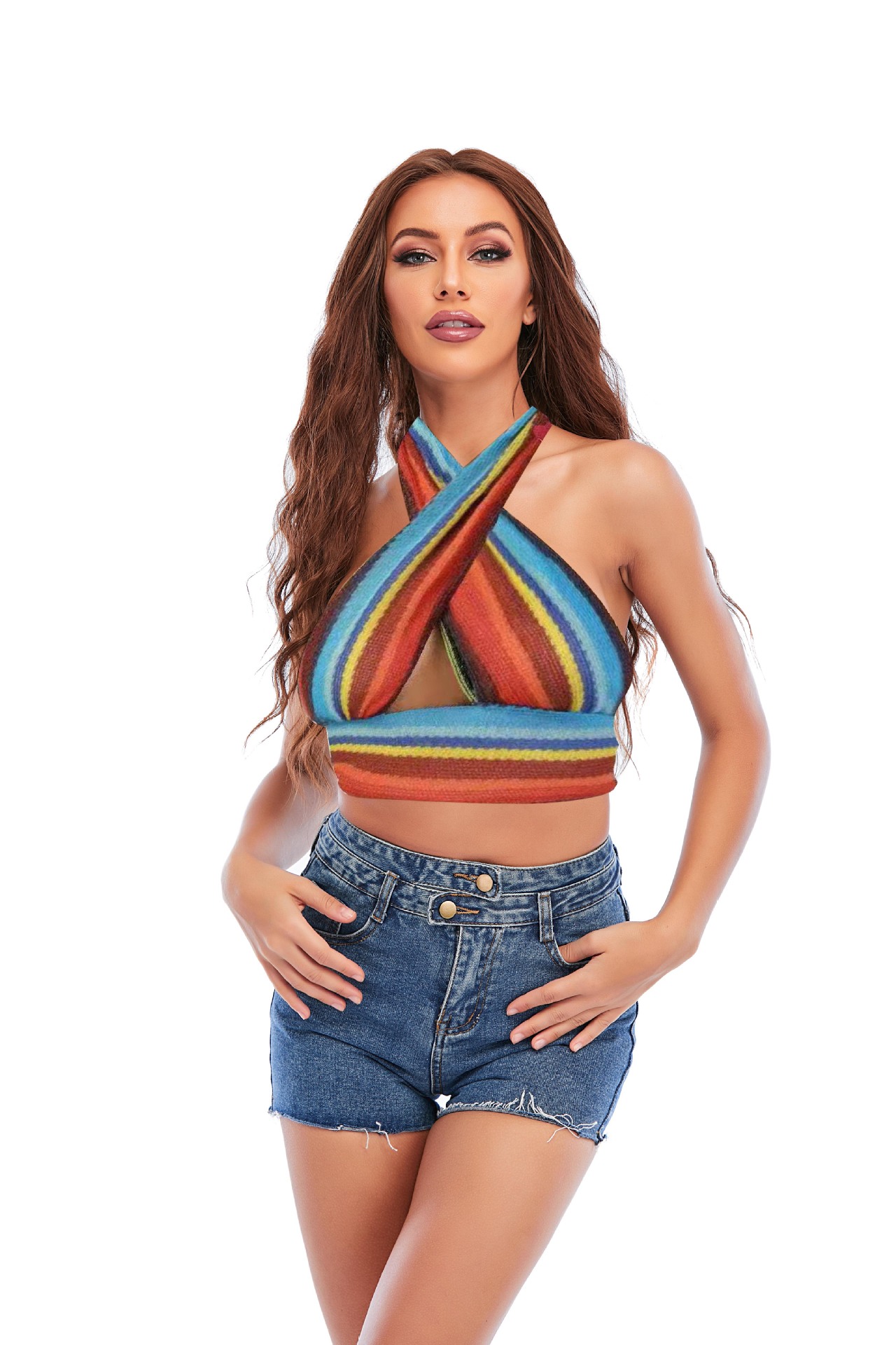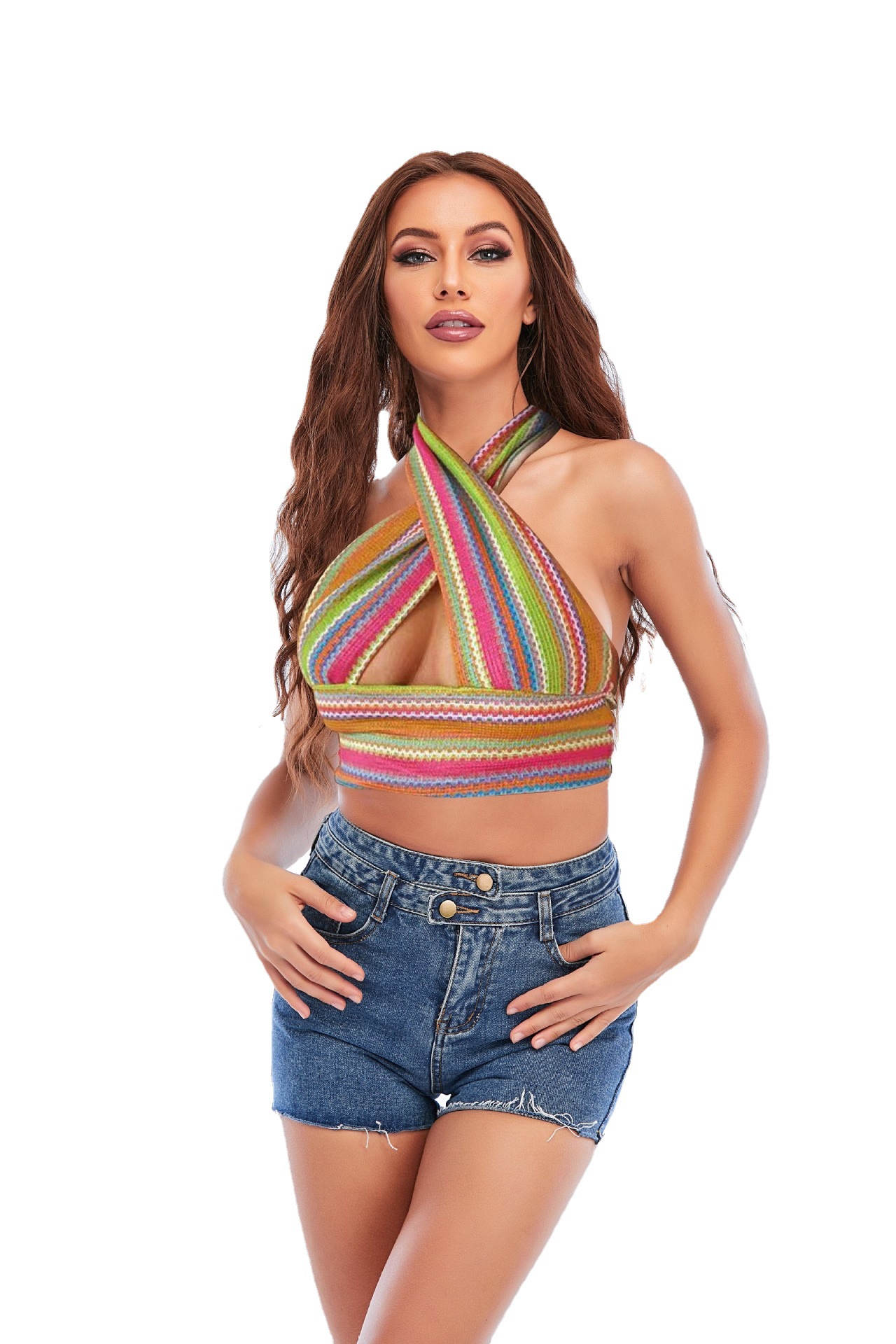 Colorful Halter Sleeveless Slim Fit Knit Crossover Top