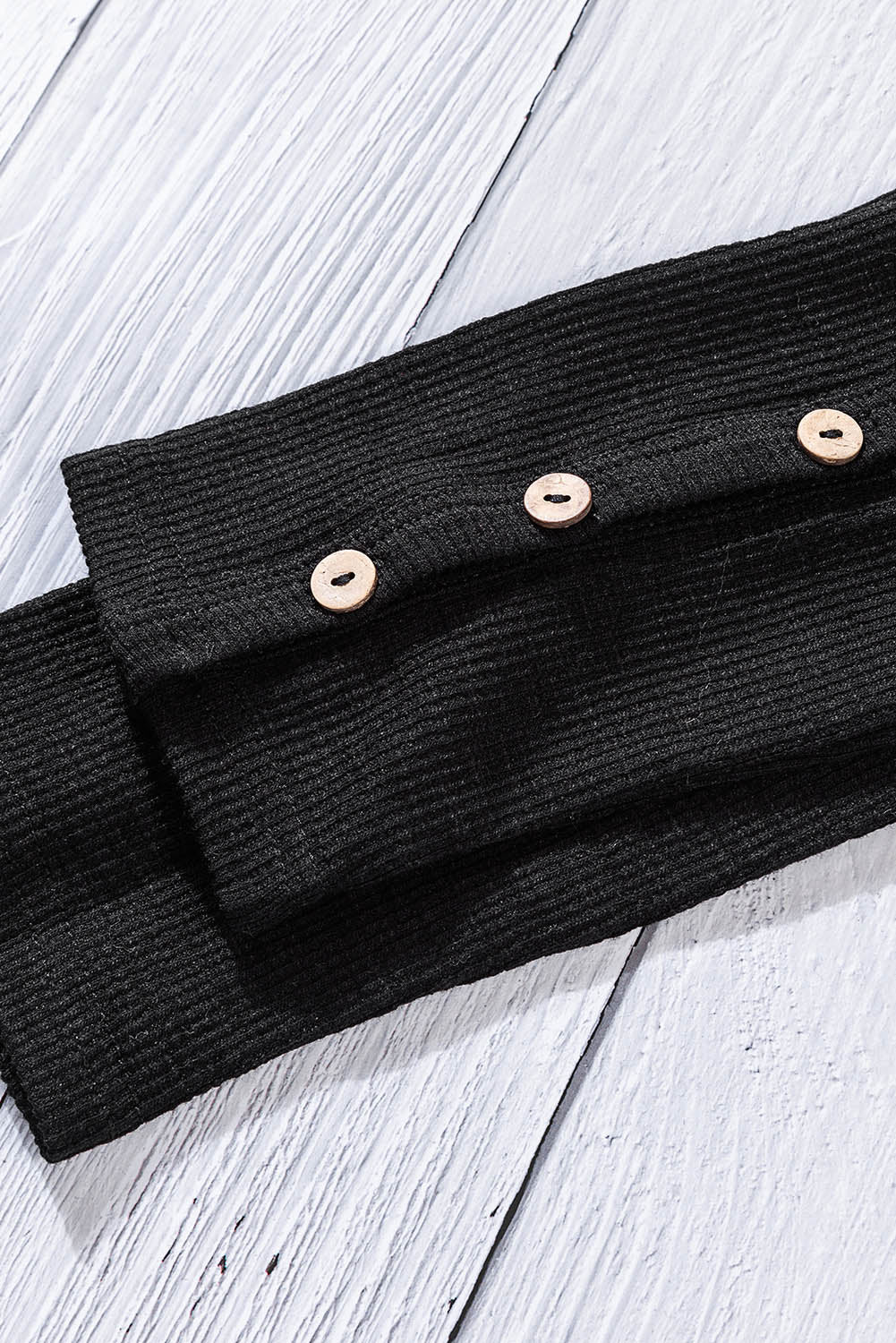 Crewneck Buttons Ribbed Knit Long Sleeve Top