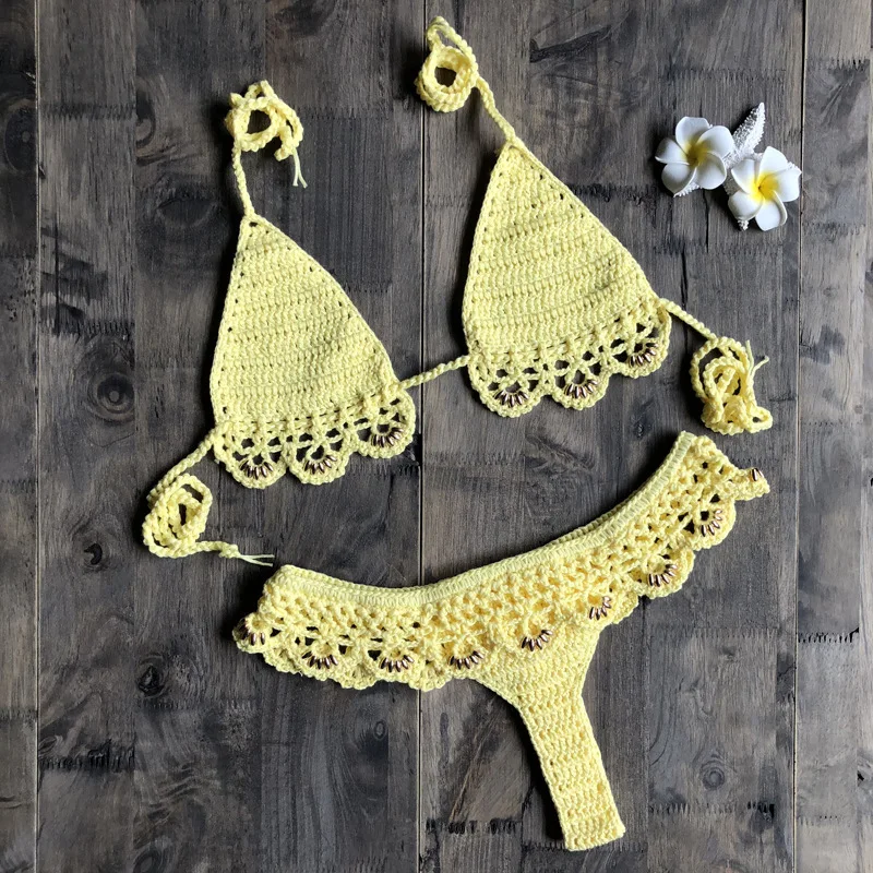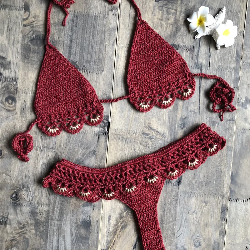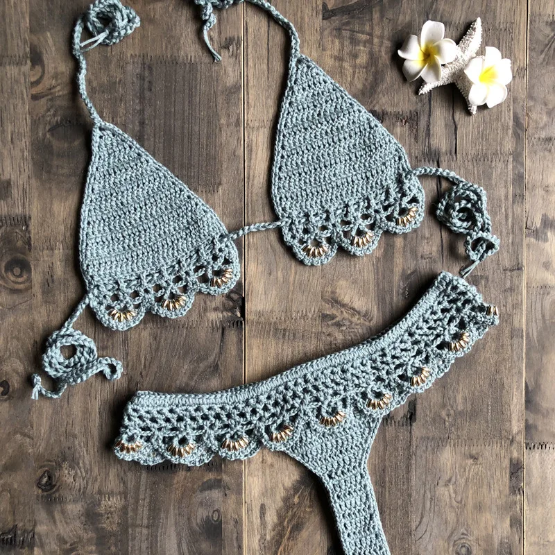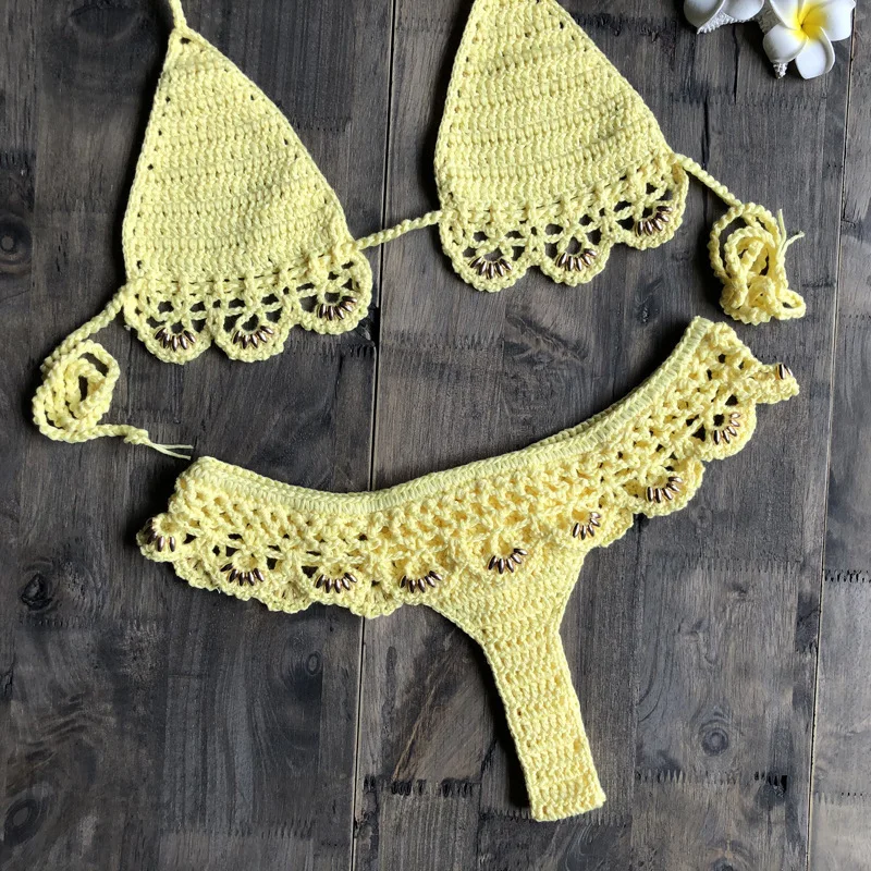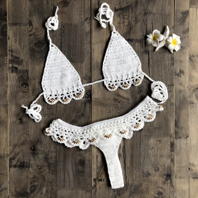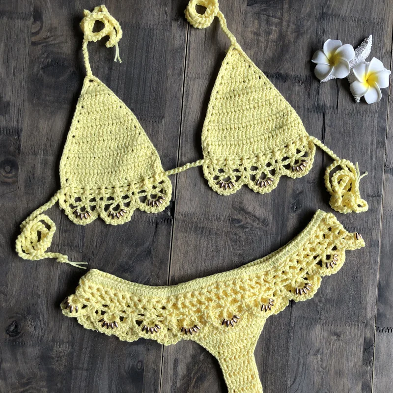 CROCHET BIKINI Summer New Women Flower Hollow Out Sexy MIMI Bikini Set Beach Split Swimsuit Crochet Backless Bras Thong Bottoms
