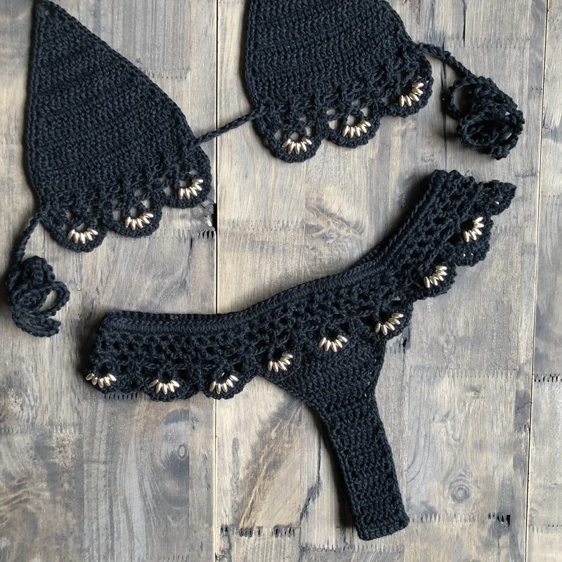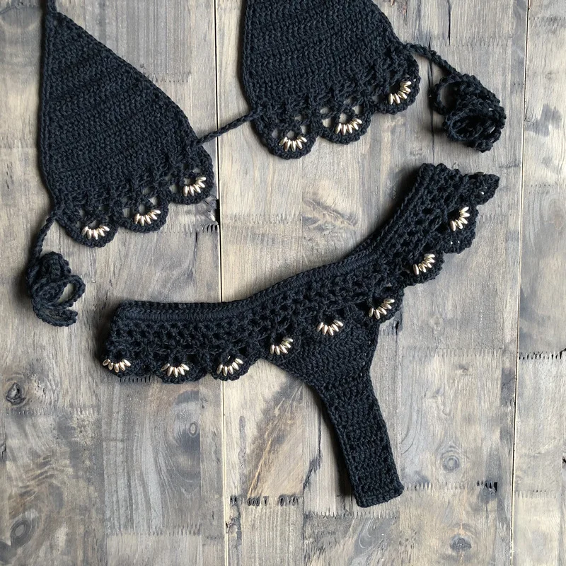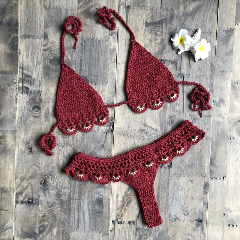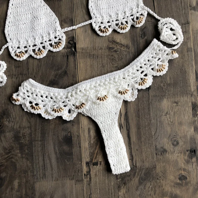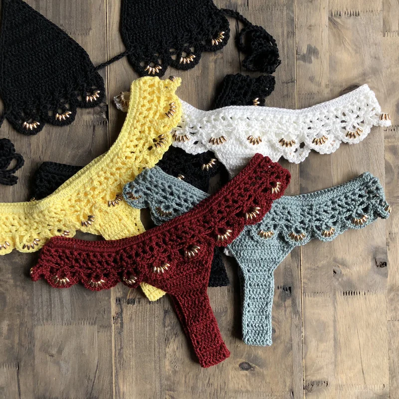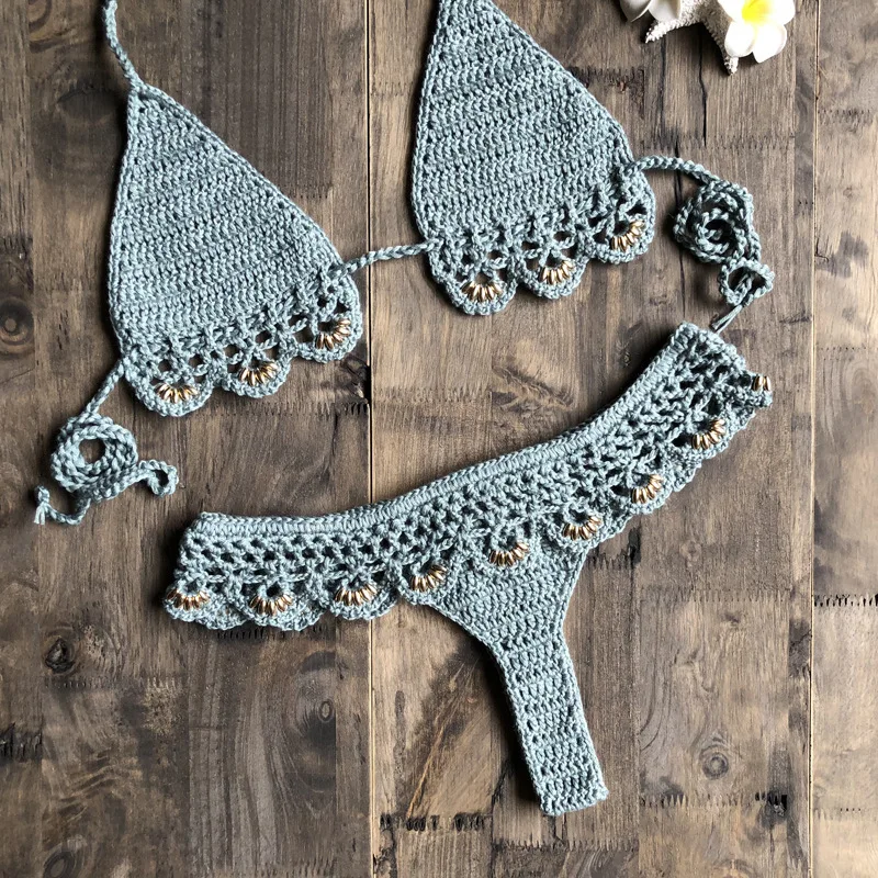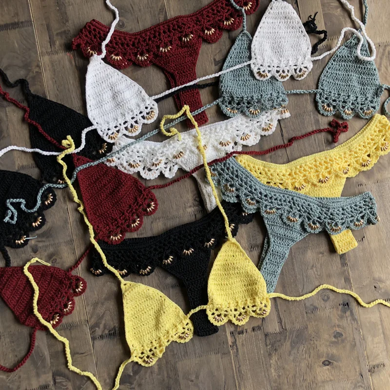 CROCHET BIKINI Summer New Women Flower Hollow Out Sexy MIMI Bikini Set Beach Split Swimsuit Crochet Backless Bras Thong Bottoms