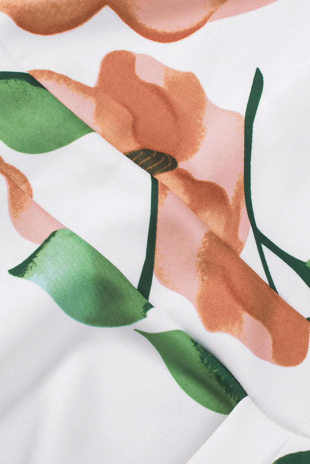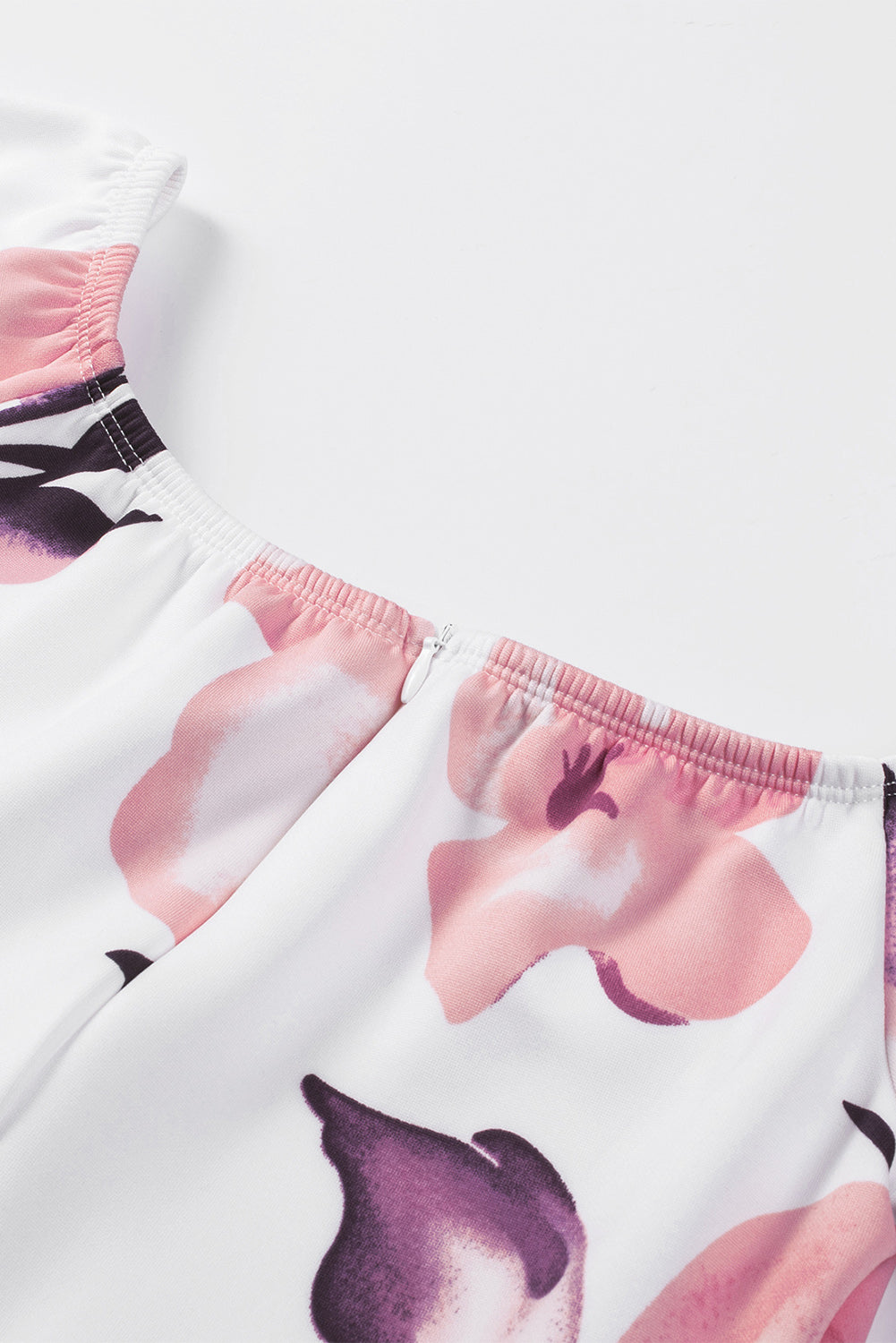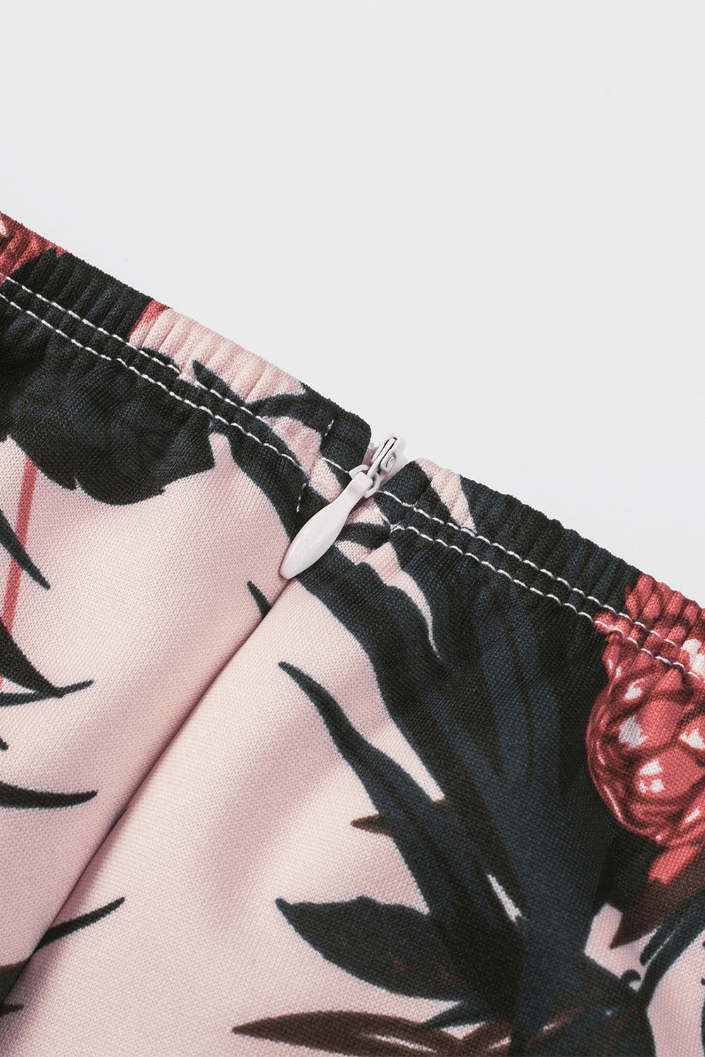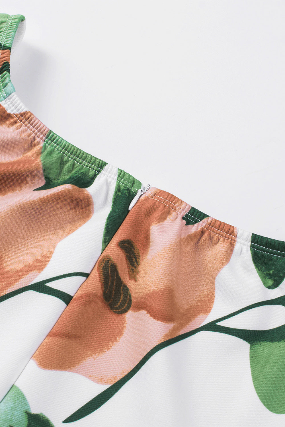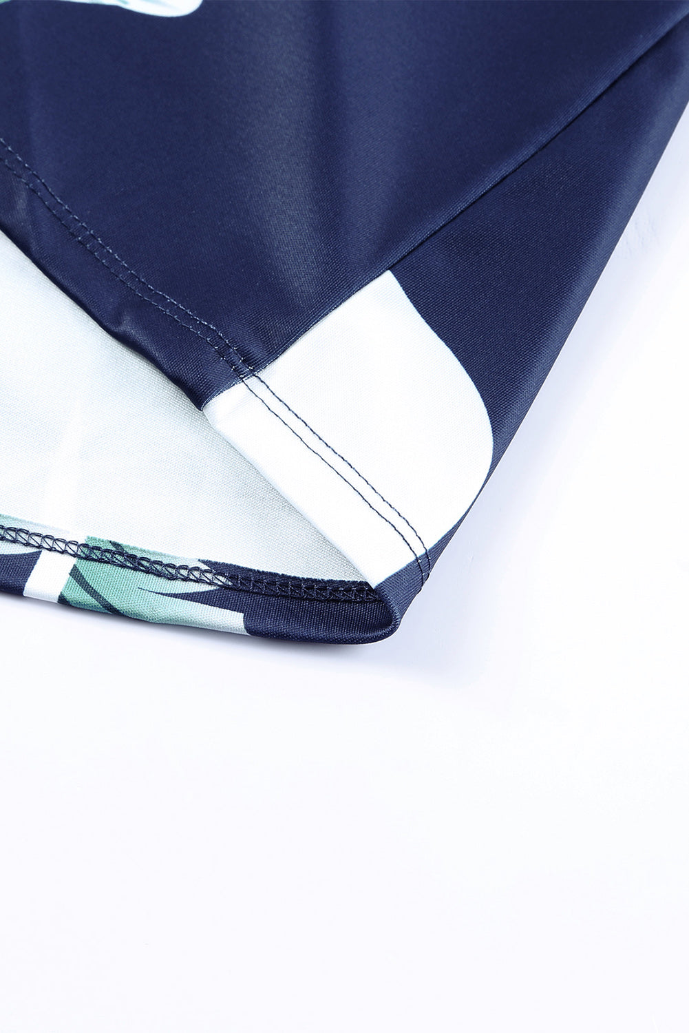 Dark Blue Floral Print Off Shoulder Slit Bodycon Midi Dress