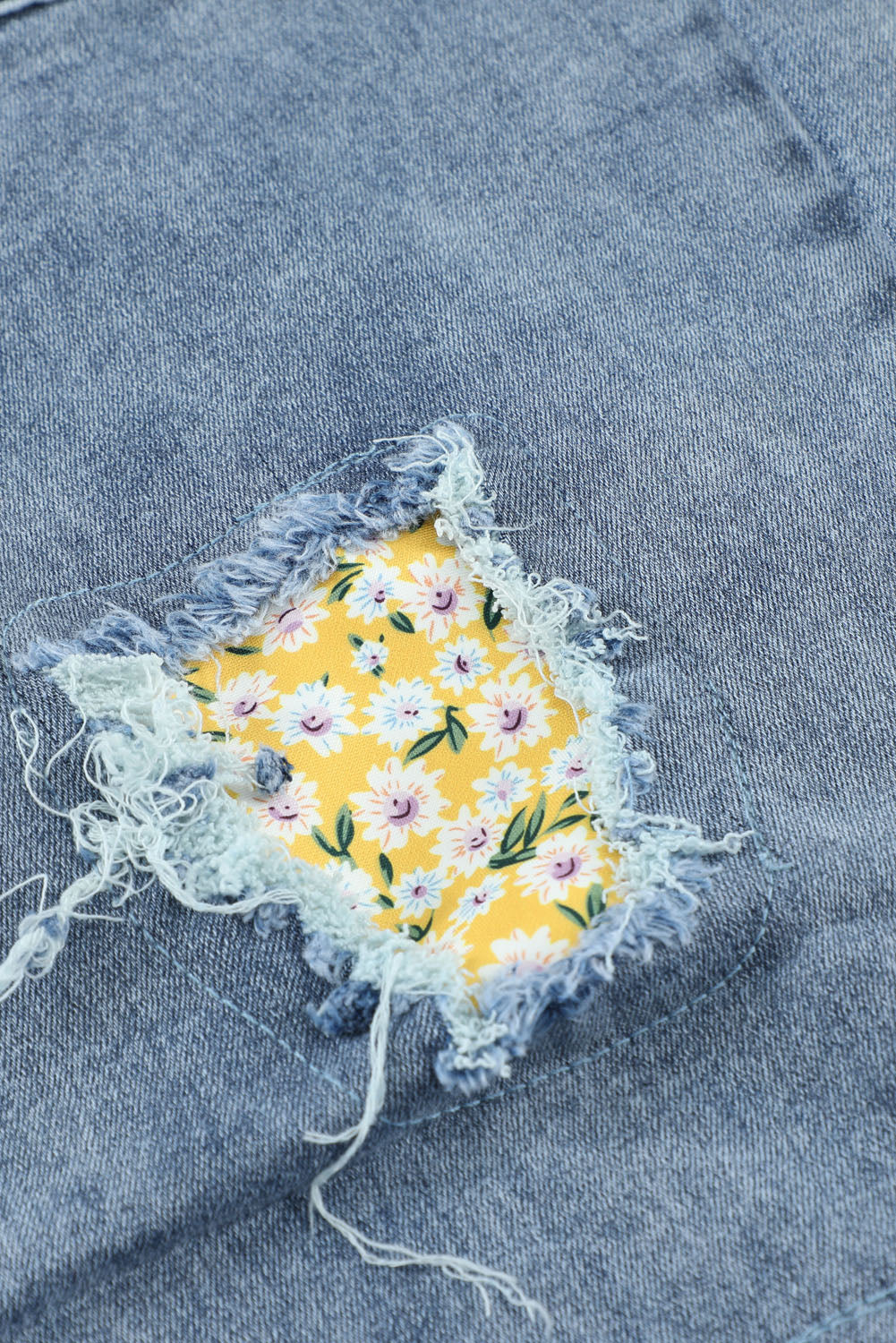 Drawstring High Waist Daisy Patches Straight Leg Jeans