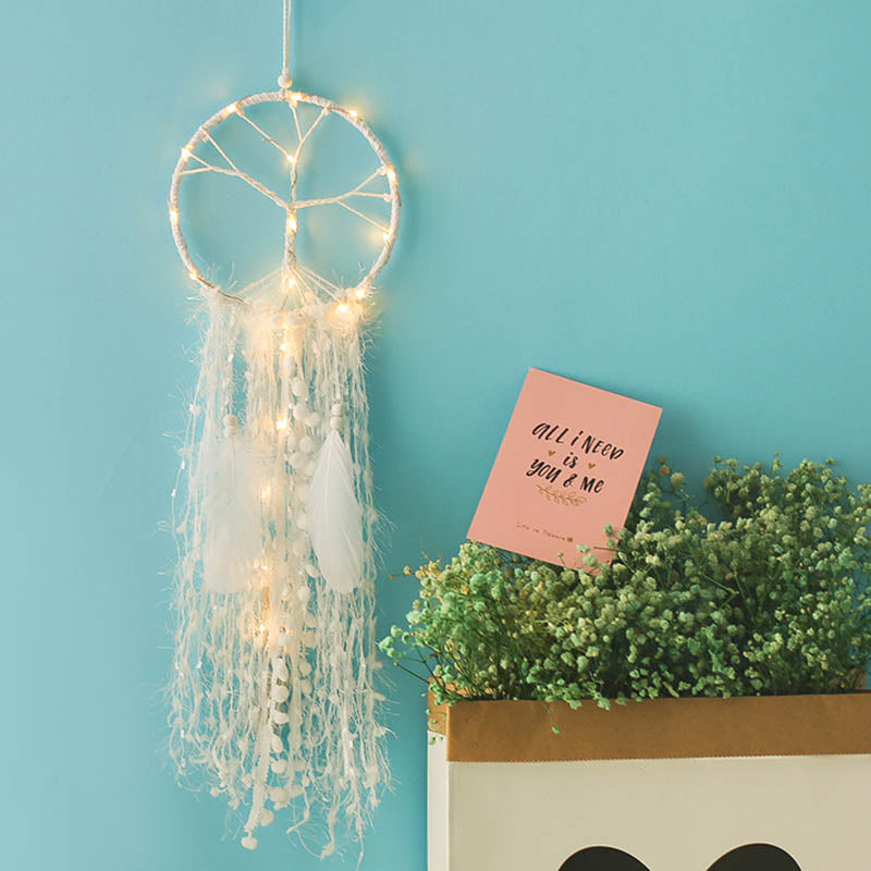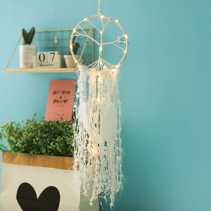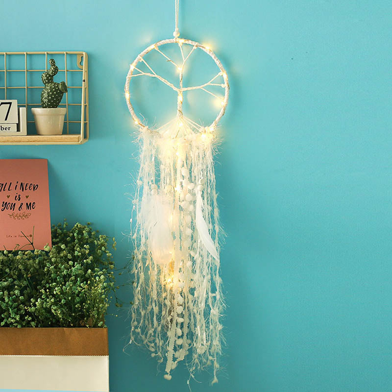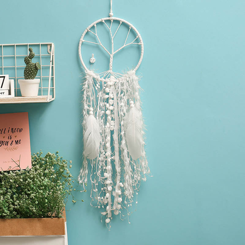 Feather Handmade Girl Catching Dream Catcher Pendant