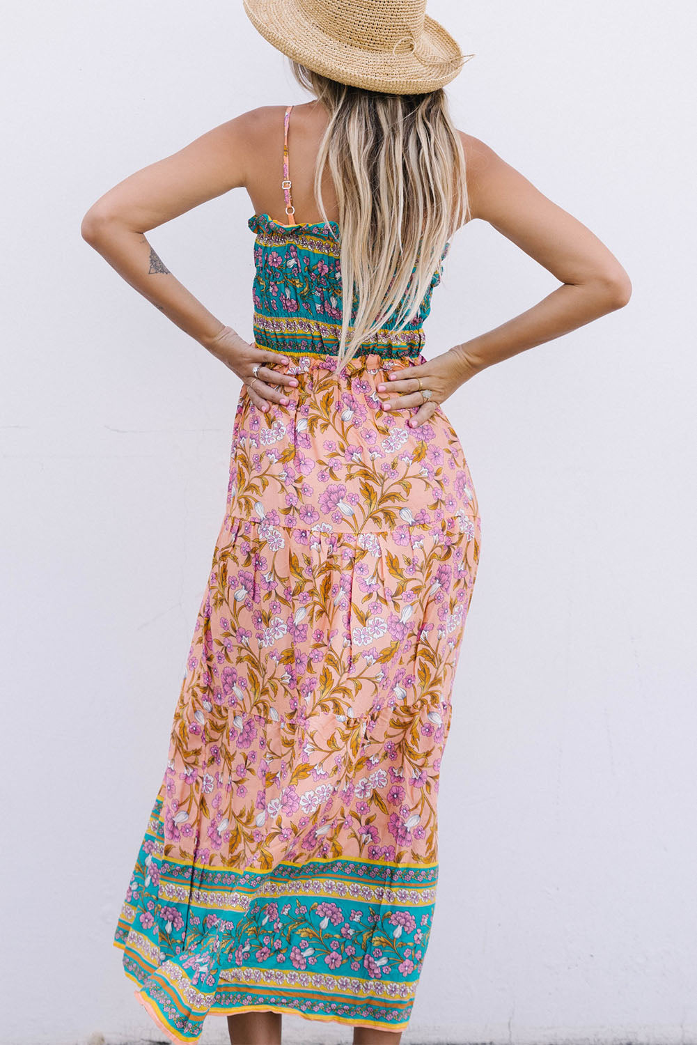 Floral Print Bodice Spaghetti Strap Maxi Dress