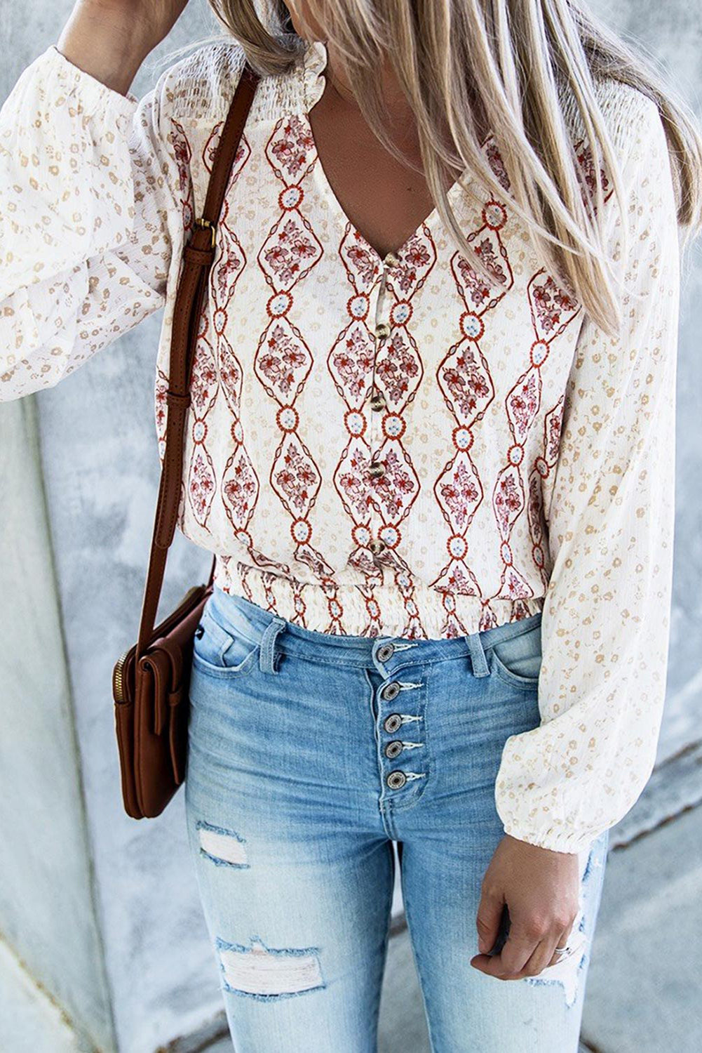 Floral Print Button-up Slim-fit Long Sleeve Shirt