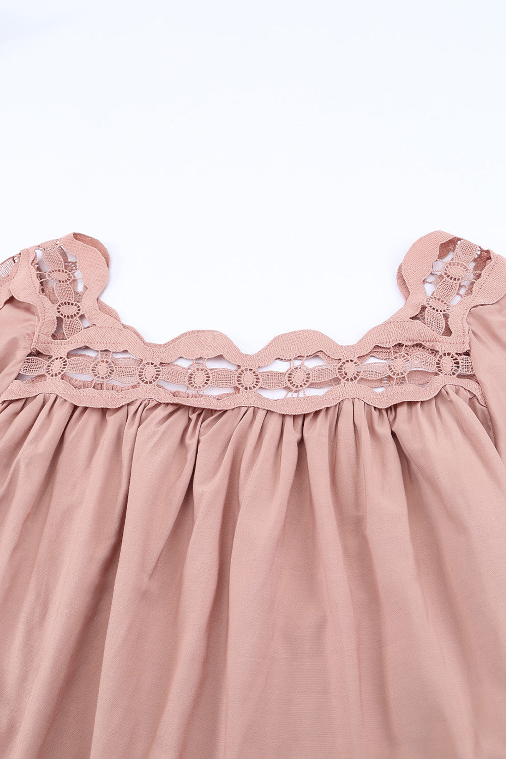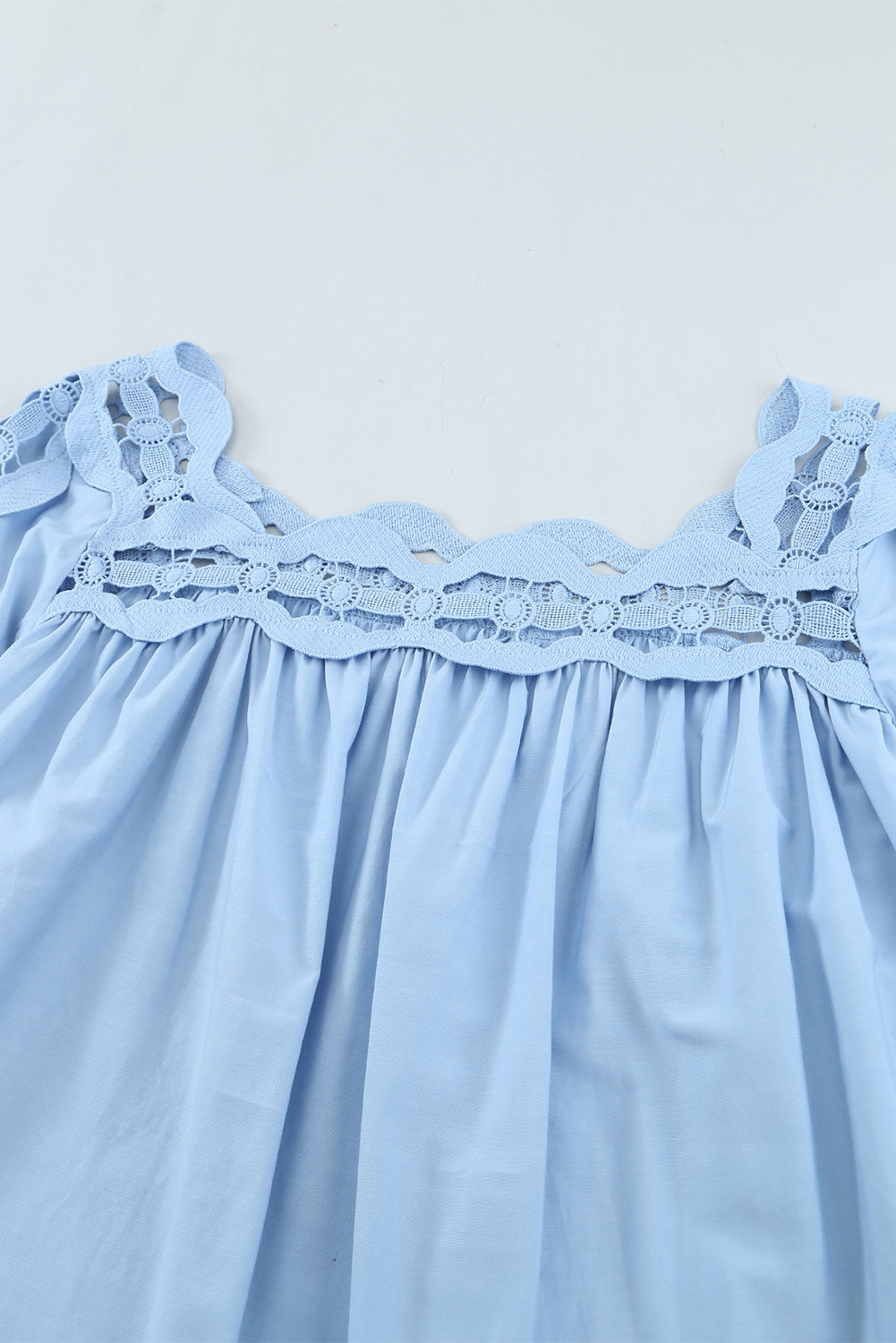 Green Drak Green Crochet Trim Hollow-out Blouse