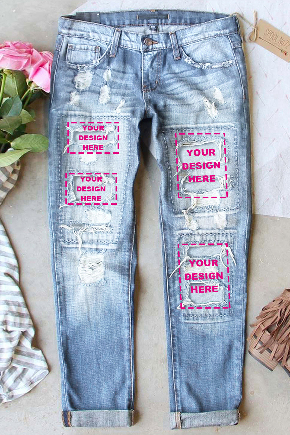 HAMMER AND FREE Graphic Cutout Ribbed Jeans