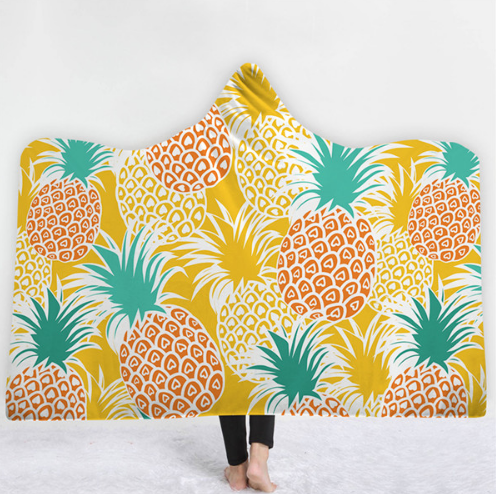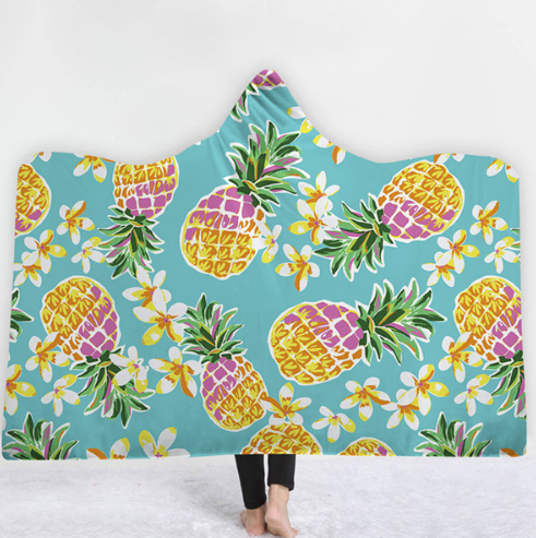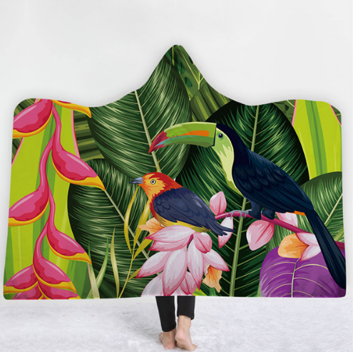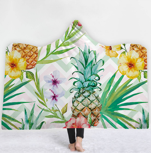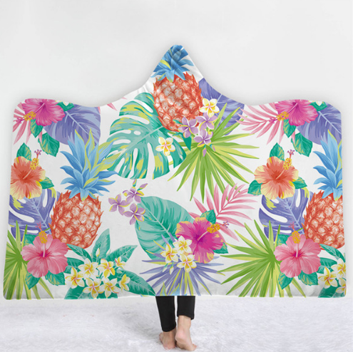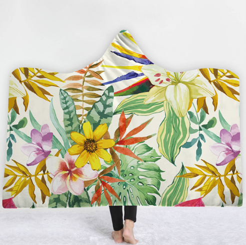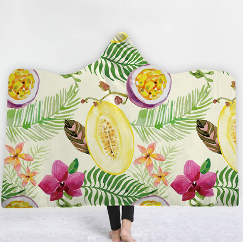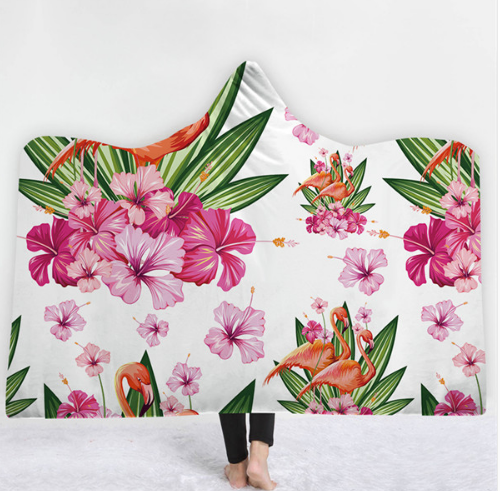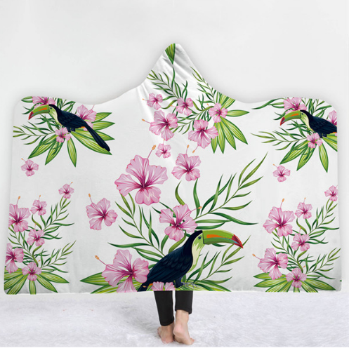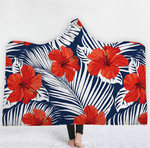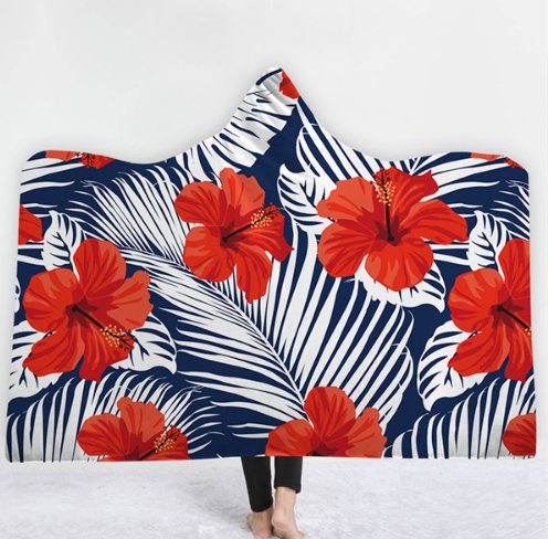 1.The hooded blanket is made of fleece fabric.There are two size,large size for adults,small size for children.Very beautiful shiny velvet print and super fluffy soft interior.