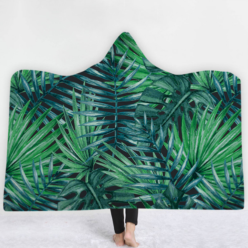 Hooded Thermal Fleece Blanket Coral Fleece Print Winter Warm Home Travel Portable Wearable Thick Hoodie Blanket For Adults Kids
