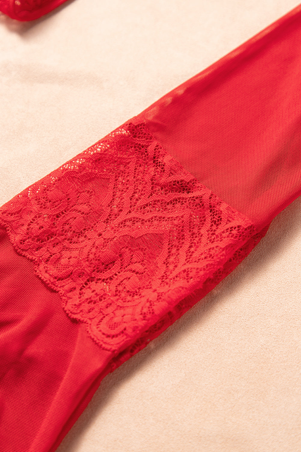 •Ultra-plunging V neck, an exquisite bow tie on the front, open front and floral lace pattern