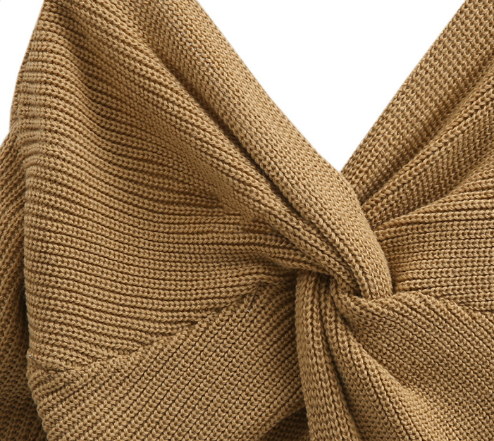 Large neckline V-neck halter head retro solid color sweater two wearing bat sweater coat