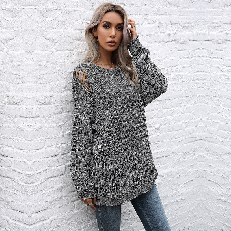 Leisure Round Neck Long Sleeve Hollow Out Shirt