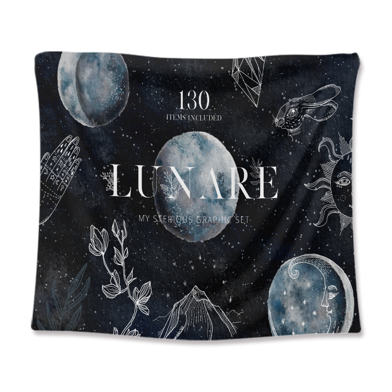 Line Moon Tapestry Wall Decor Mounted
