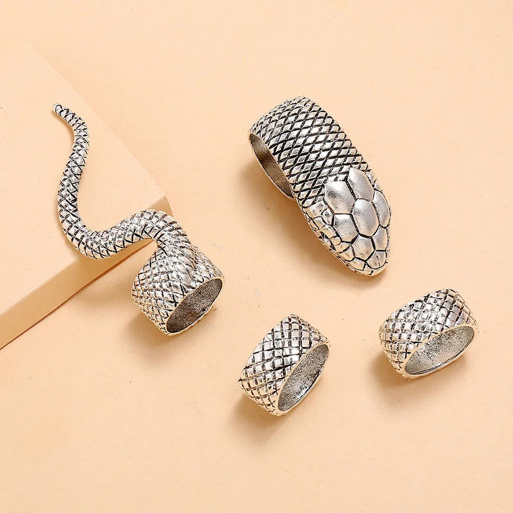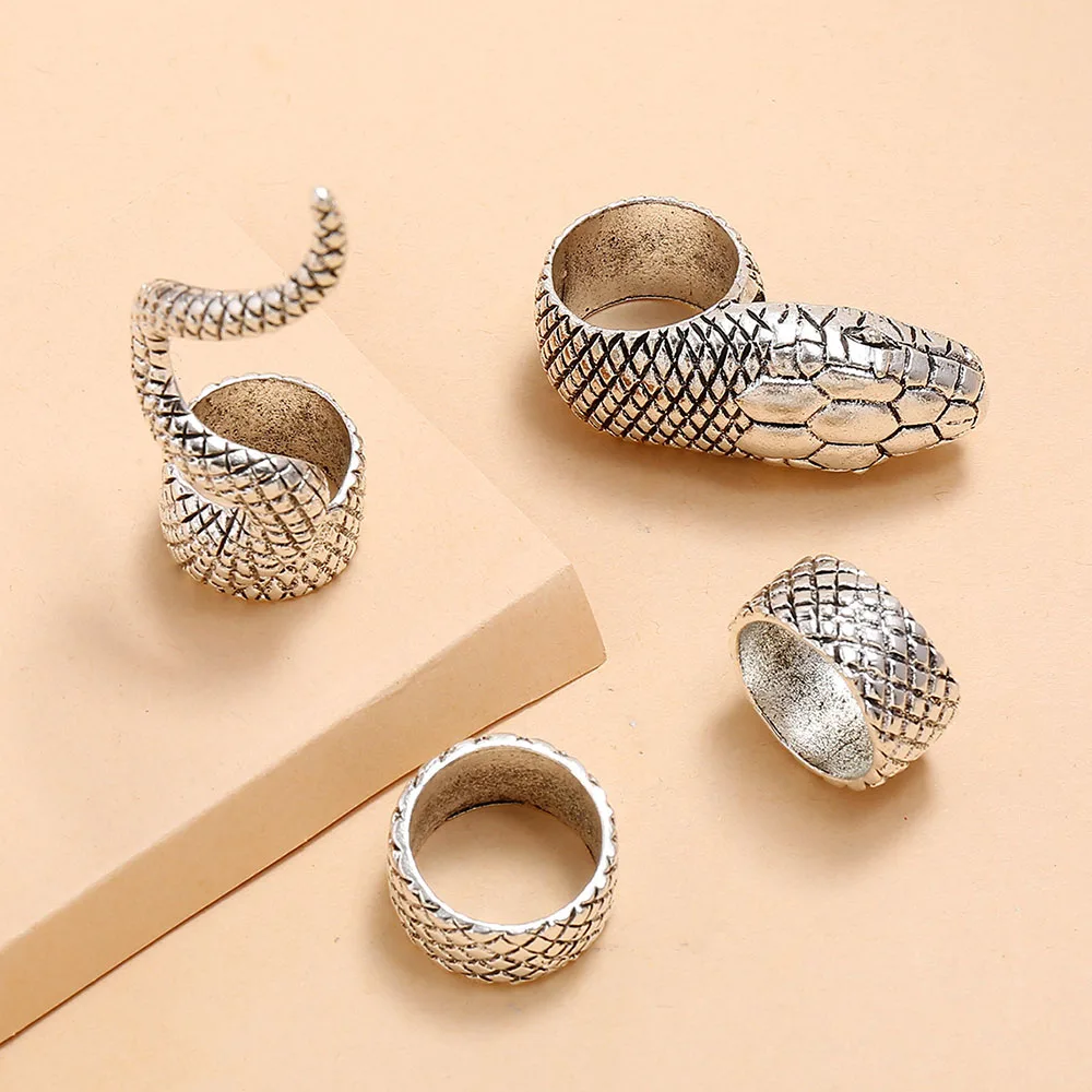 Modyle 4Pcs/Set Gothic Steampunk Snake Midi Ring Set Vintage Punk Metal Knuckle Joint Rings for Women Boho Party Jewelry Anillos