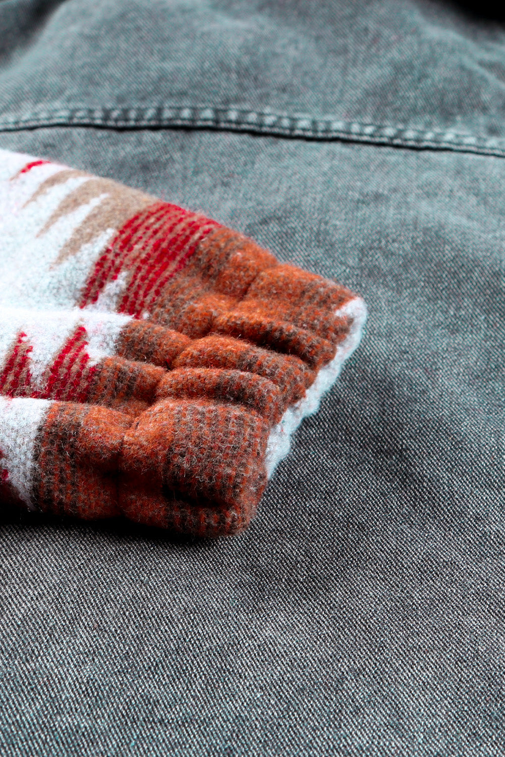 Multicolor Aztec Print Frayed Hem Denim Jacket