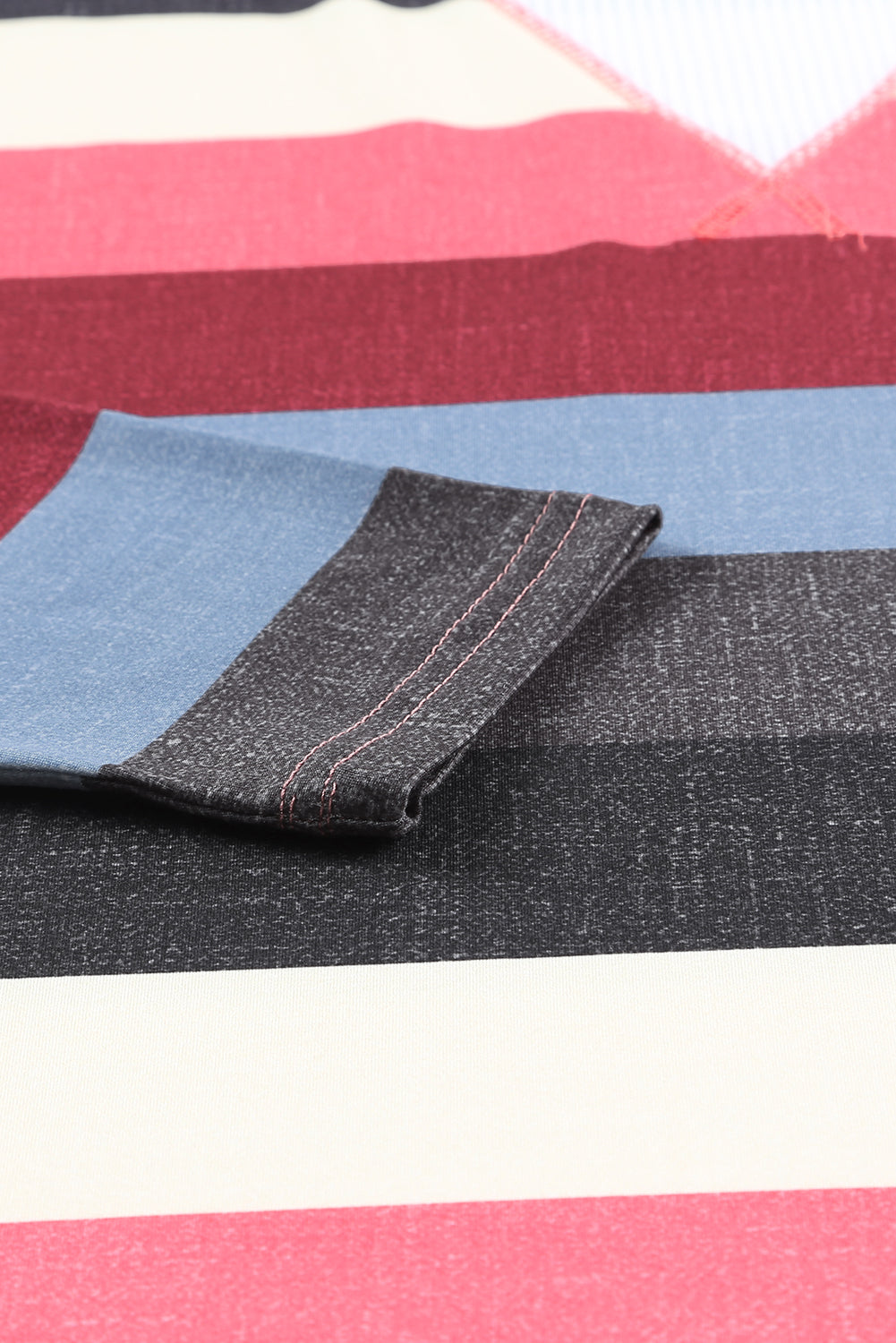 - Round neck, waffle knit patch on the front, multicolor striped panels