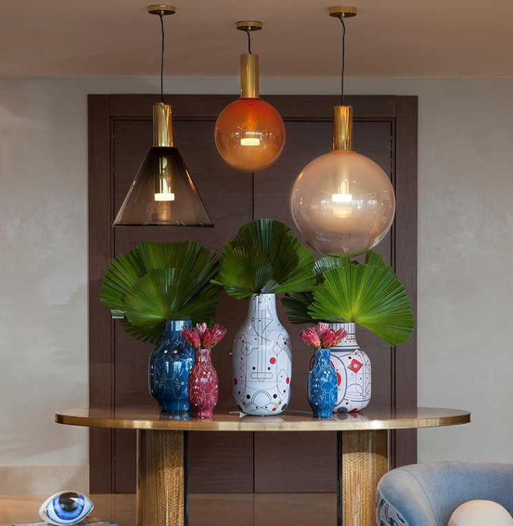Nordic Art Geometric Conical Stained Glass Ball Chandelier