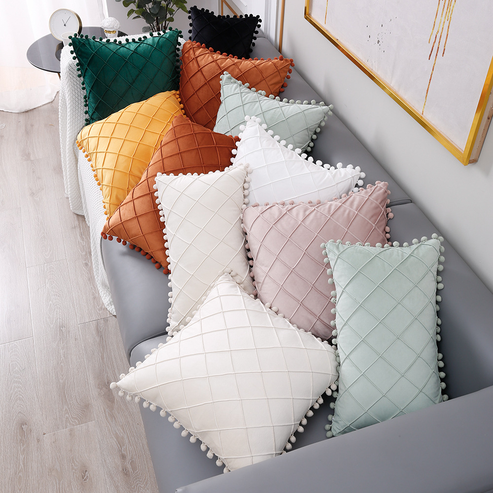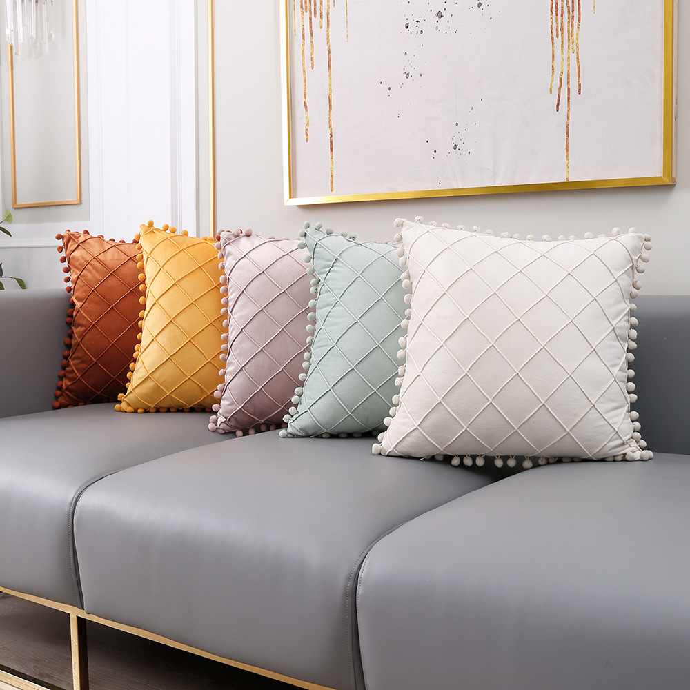 Pillow Case Dutch Plush Ball Plaid