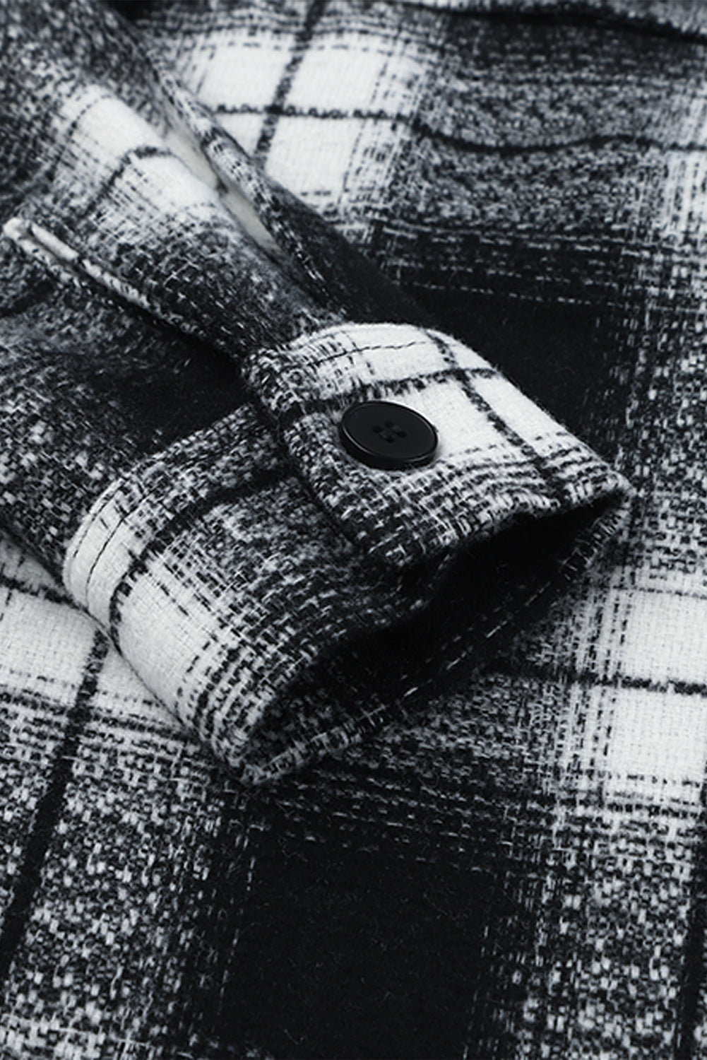 Plaid Print Buttoned Pocketed Long Sleeve Long Coat