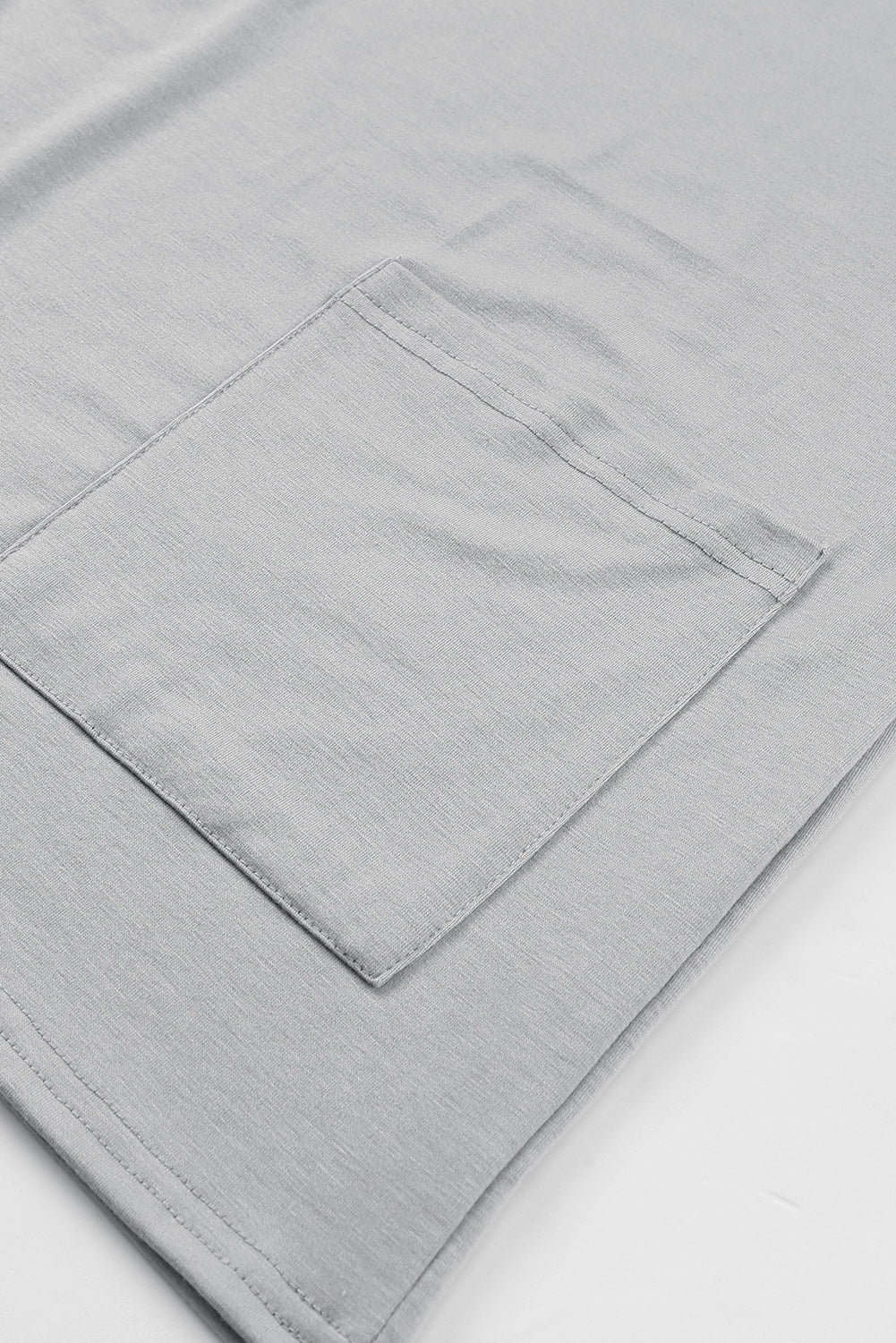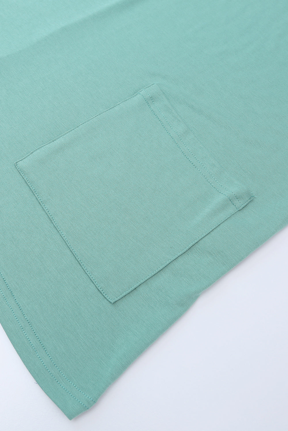 - It includes a crew neckline, short sleeve, side pocket, and loose fit