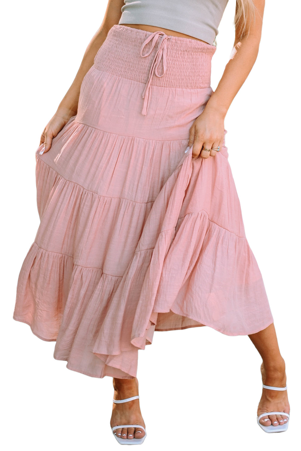 Smocked High Waist Tiered Maxi Skirt
