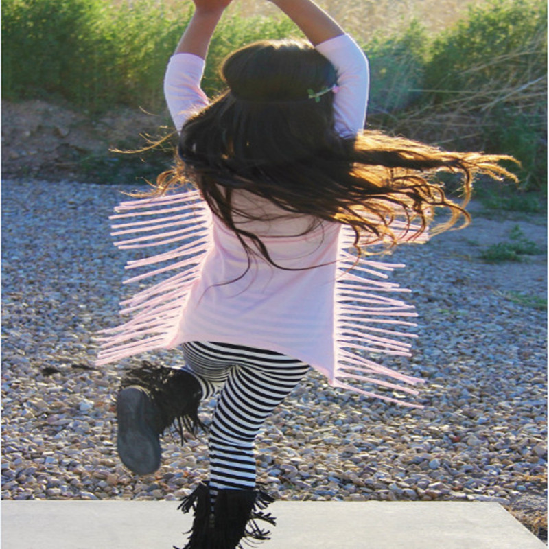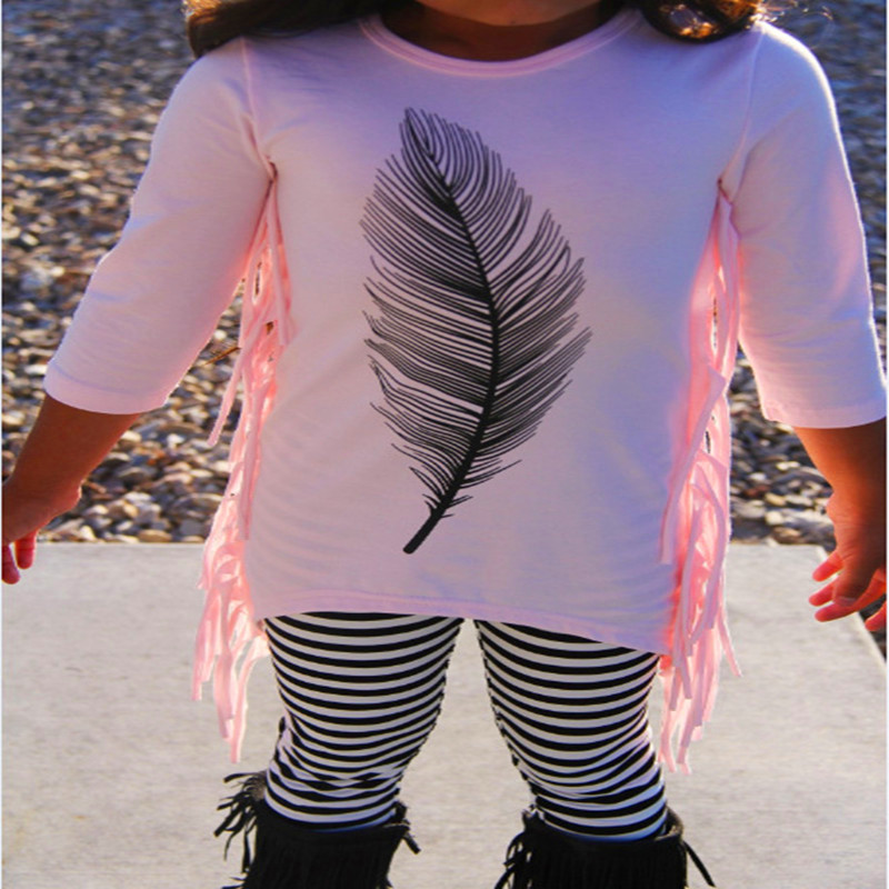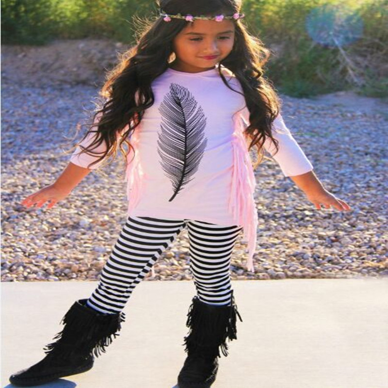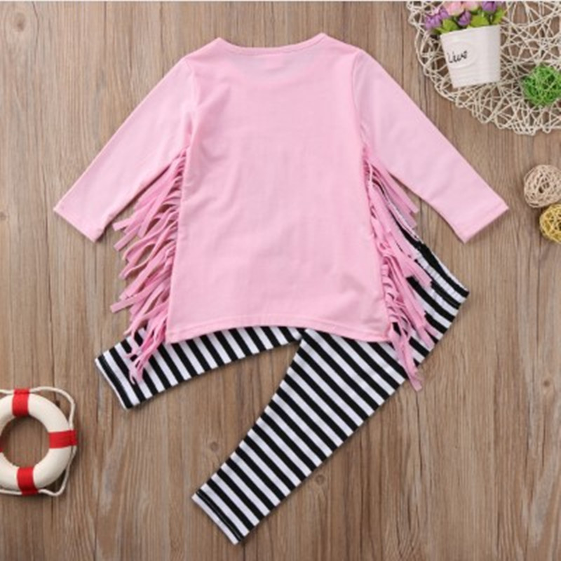 Spring And Autumn New European And American Girls Round Neck Printed Feather Sleeve Striped Pants Two-piece Suit