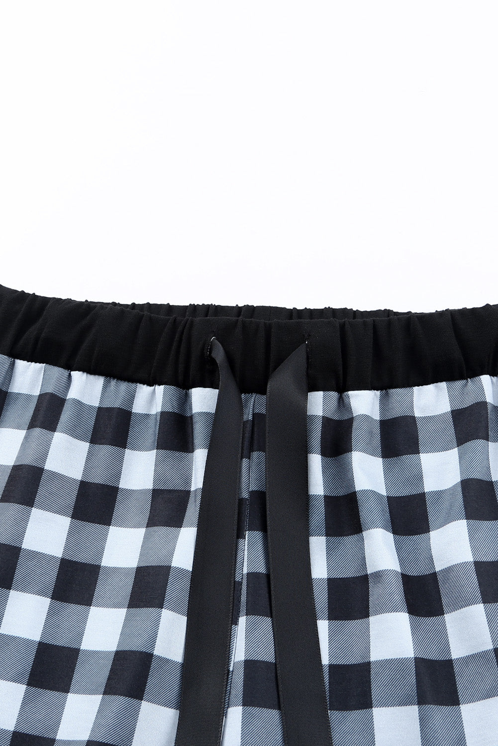 •The two-piece pajama set includes a pullover neck short sleeve tee and elastic waist drawstring long pants