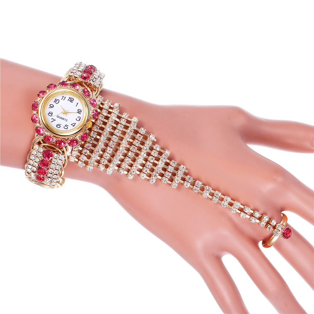 Trendy Ladies Full Diamond Claw Chain Ring Set Watch Fashion Ladies Watch