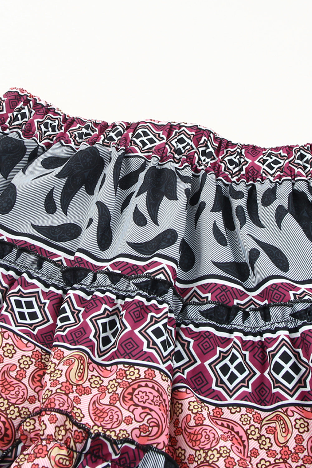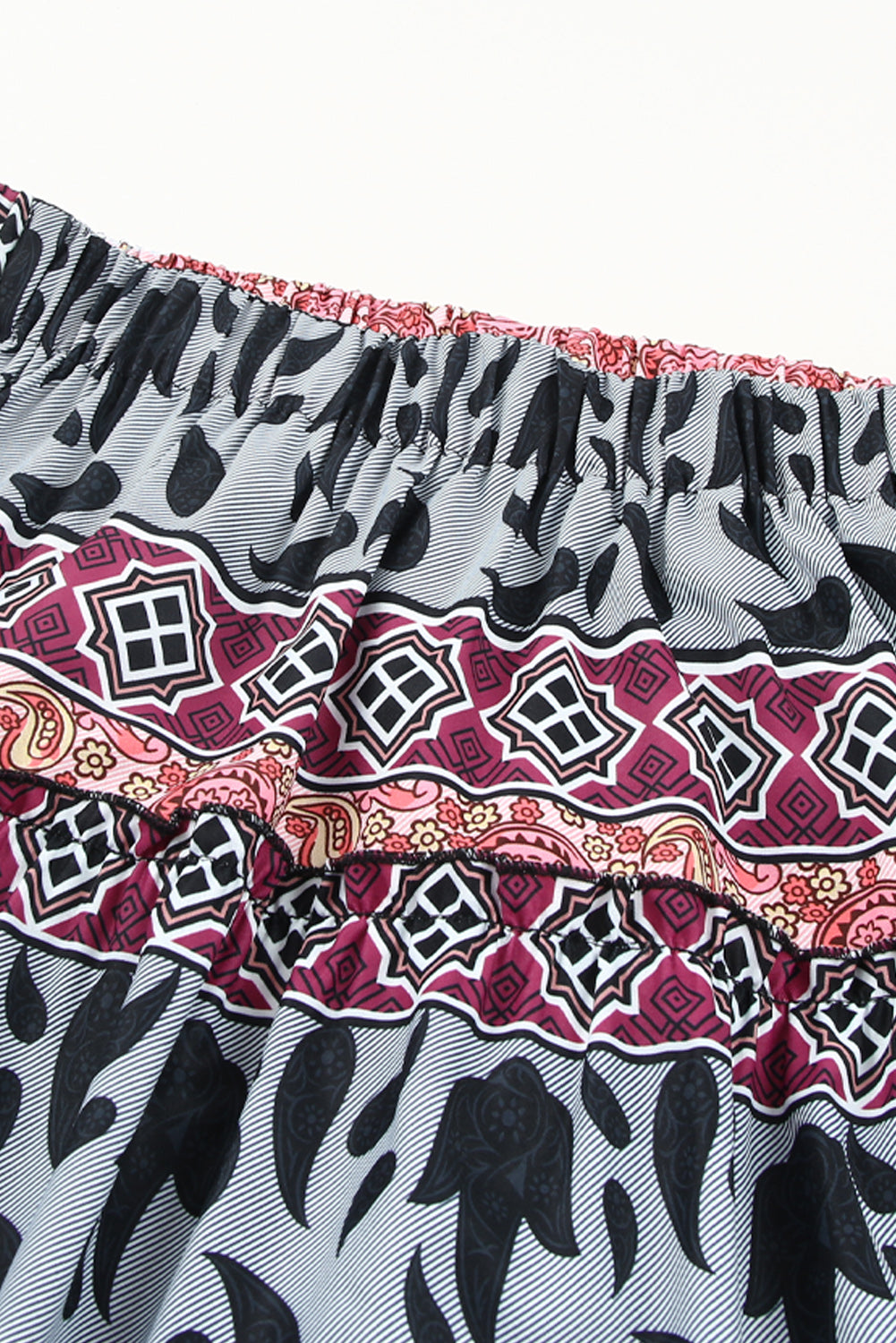 Tropical Floral Print Tiered Ruffle High Low Skirt