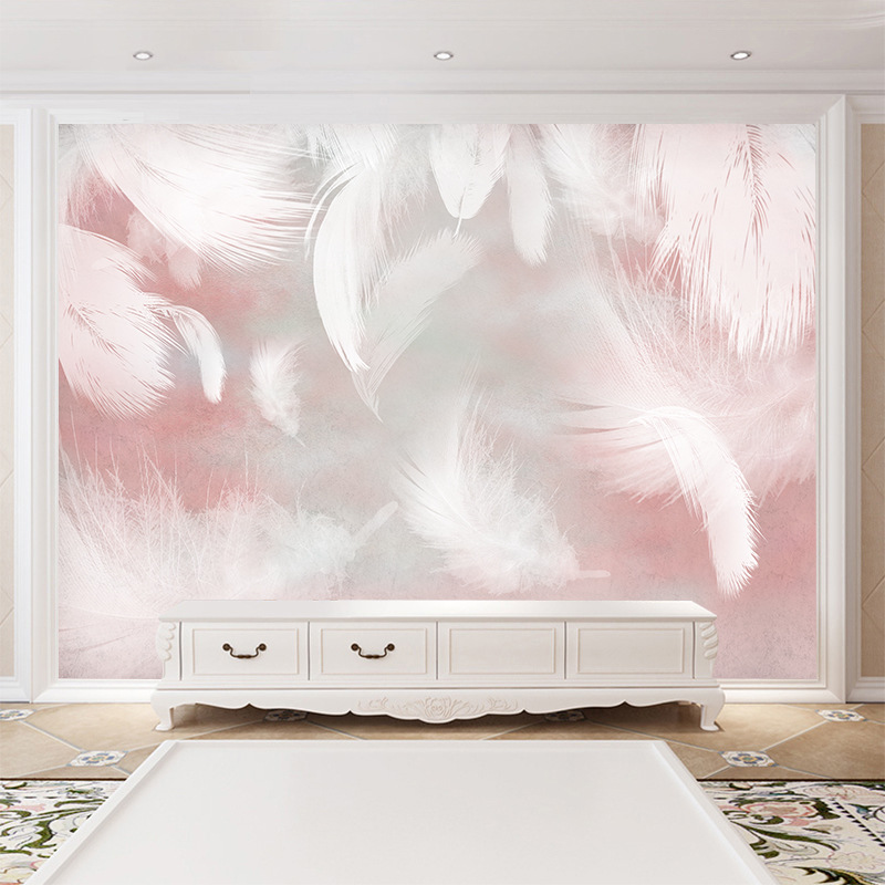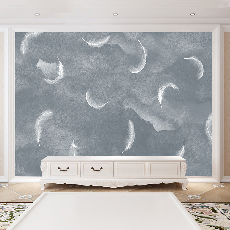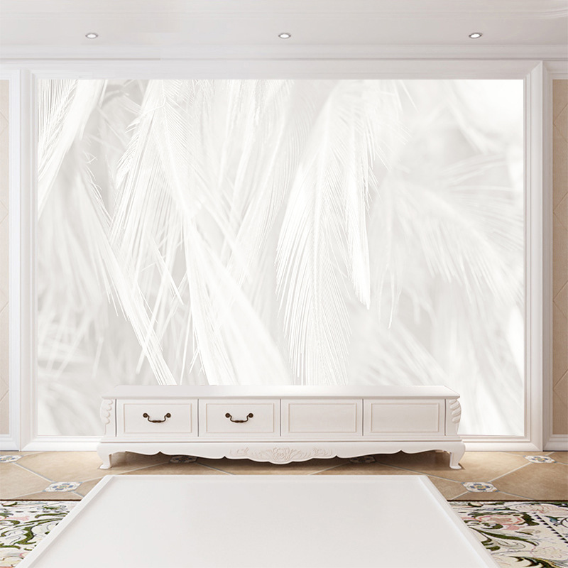 White Feather Mural Living Room Self Adhesive PVC Wallpaper